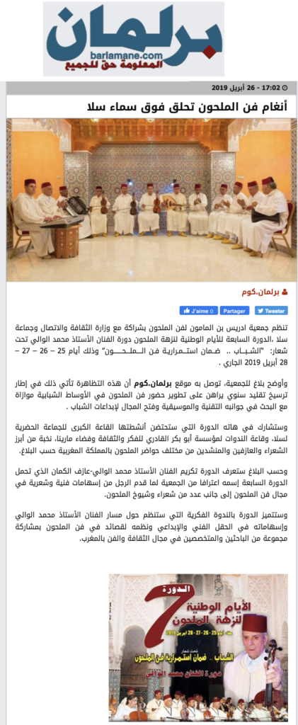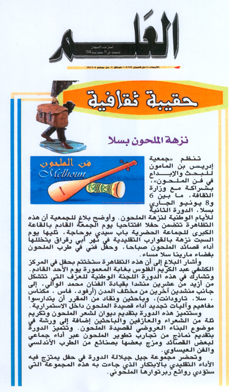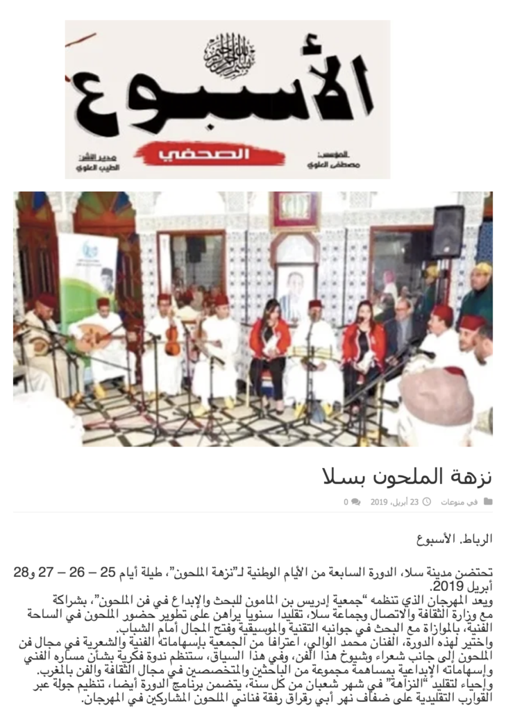 من خلال هذه الصفحة، ستجدون كل جديد حول فعاليات فن الملحون وأخباره، مع لقاءات حصرية مع الفنانين والباحثين المهتمين بهذا الفن الأصيل.