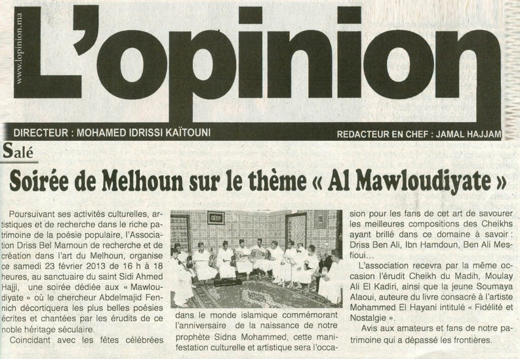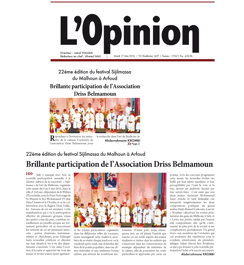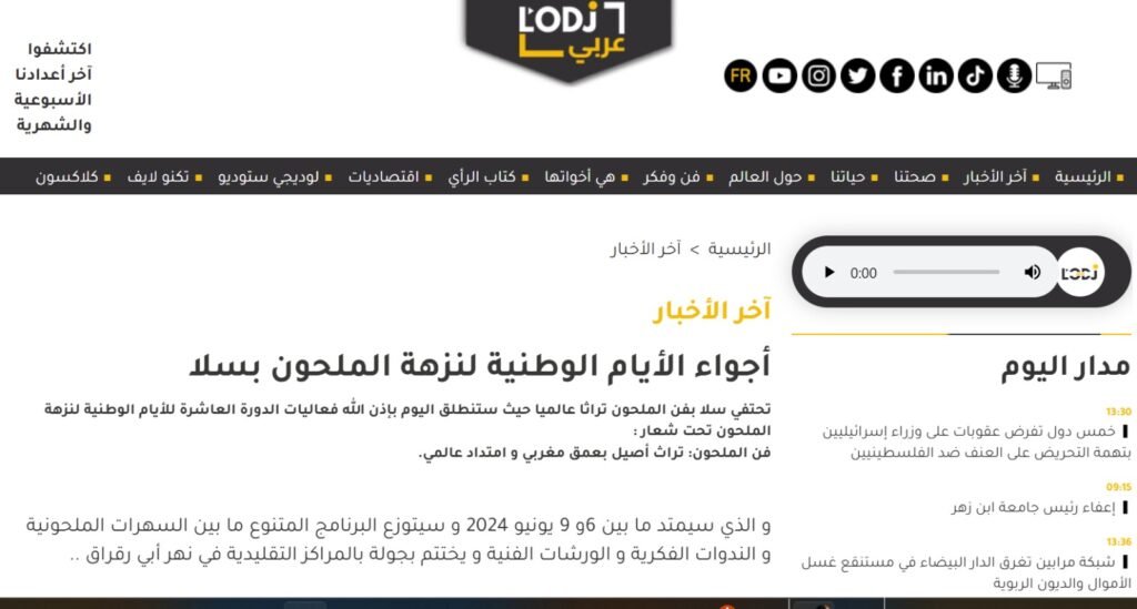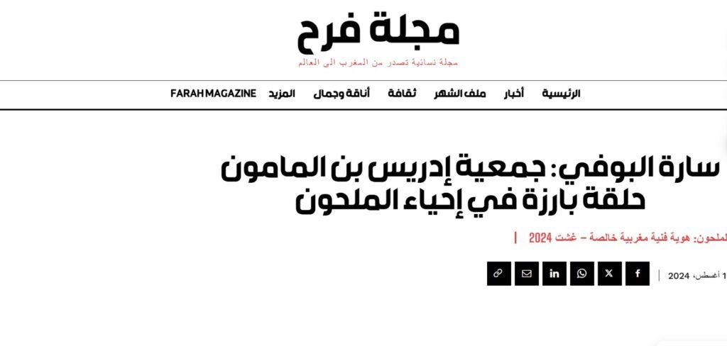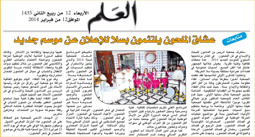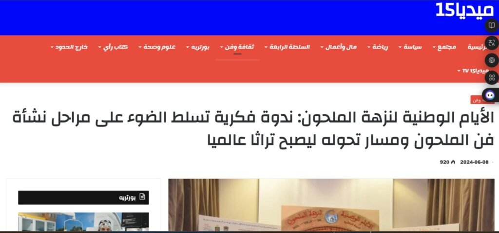 تعتبر التغطية الصحفية الخاصة بفن الملحون جزءًا مهمًا من نشر الوعي الثقافي وتعريف الجمهور بهذا الفن المغربي العريق. من خلال هذه الصفحة، نقدم لكم تغطية شاملة لأحدث الأحداث والفعاليات المرتبطة بفن الملحون، بما في ذلك المهرجانات، الأمسيات الفنية، والاحتفالات الثقافية.