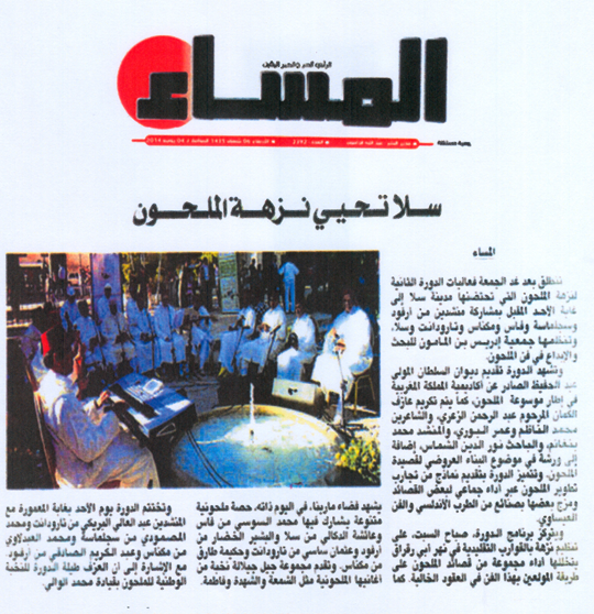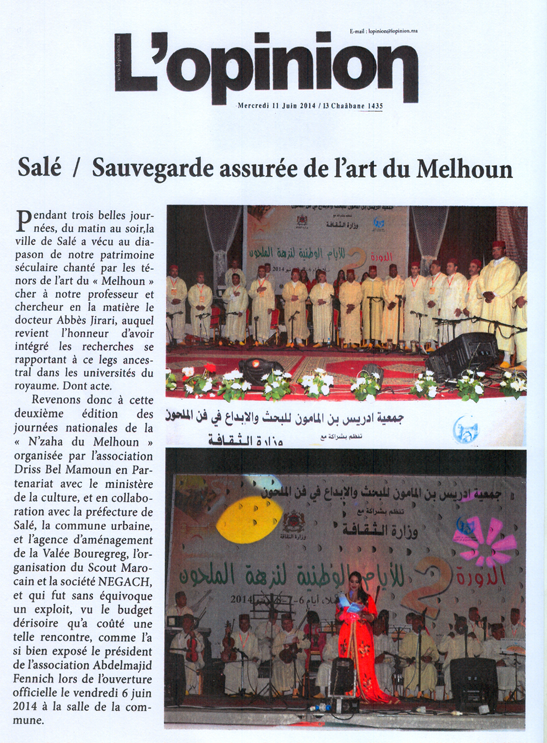 Mercredi 11 Juin 2014 / 13Challant 1435 Salé / Sauvegarde assurée de l’art du Melhoun Pendant trois belles journees, du matin au soir,la ville de Sale a vécu au diapason […]